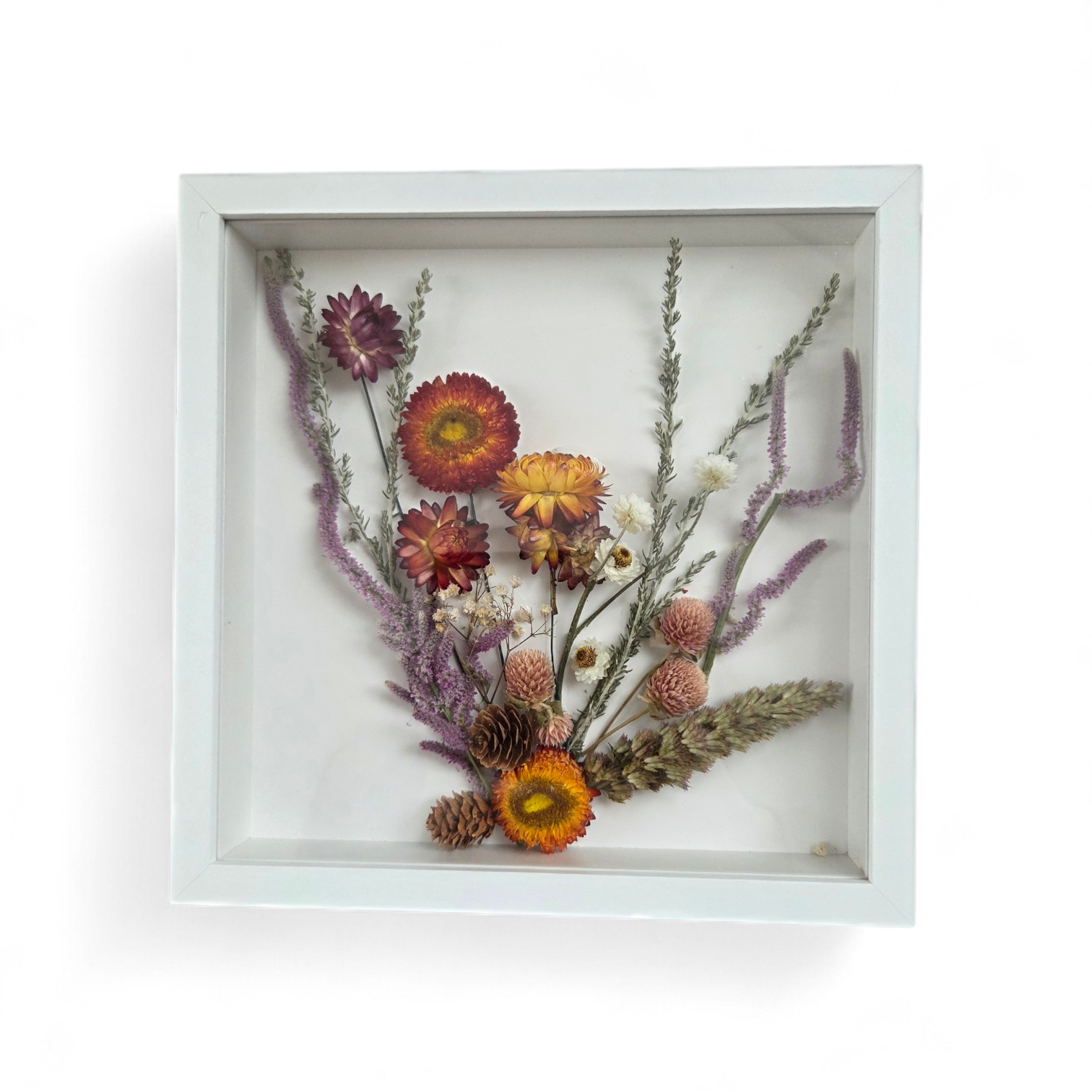 A 27cm x 27cm botanical composition set within a deep 4.5cm shadow frame.
